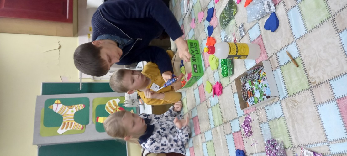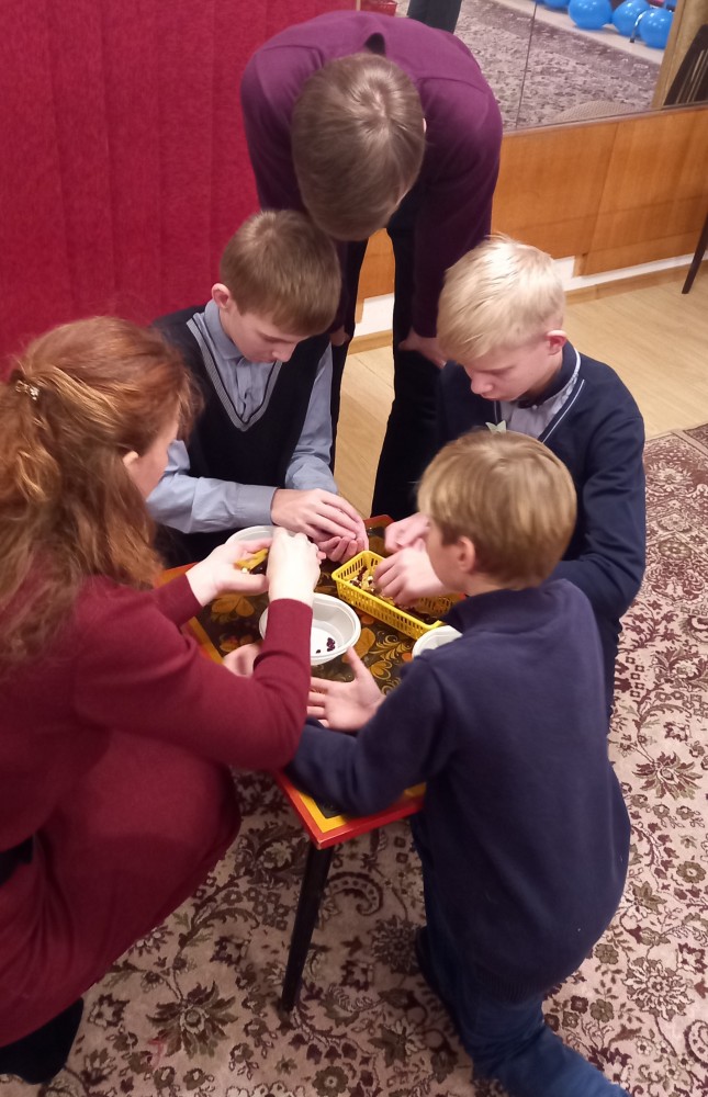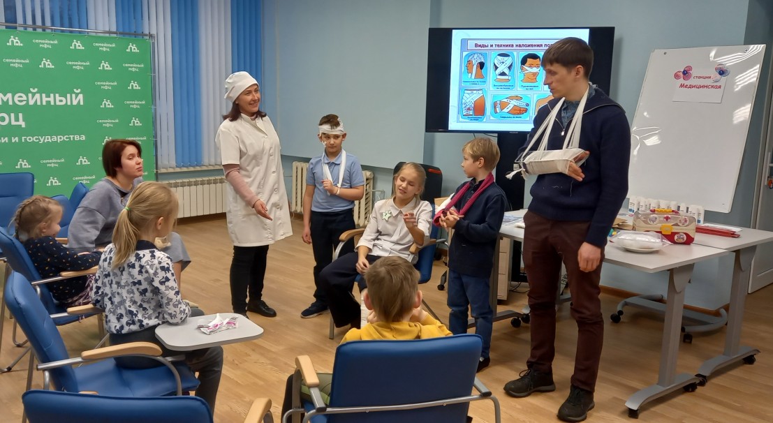 В начале игры семьи поделились на две команды. Командам предстояло пройти четыре станции: эстафетную творческую, медицинскую и декоративно –прикладную и собрать пословицы о семье. На каждой из станций были представлены свои задания, с которыми все справились на отлично. Родители и дети проявили энтузиазм, сплоченность и умение работать в команде. На декоративно –прикладной станции семьи с удовольствие изготовили подарки своими руками-рамочки для семейных фотографий, а на творческой станции - сделали открытки с поздравлениями на День защитника Отечества для бойцов СВО.