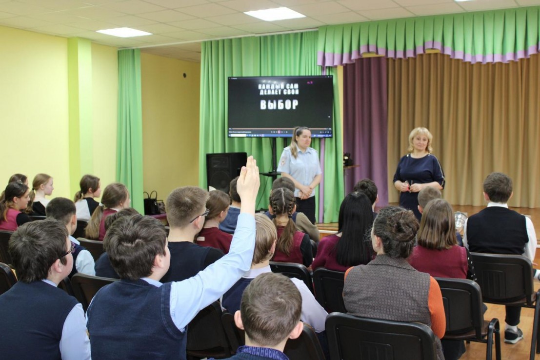 В МОУ Ерденевская СОШ было проведено социально значимое мероприятие заведующая филиалом «Согласие» Неживова Нина Егоровна, юрисконсульт Жукова Анна Романовна, инспектор ПДН ОМВД России по Малоярославецкому району Гулина Екатерина Владимировна на тему: «Сделай правильный выбор»