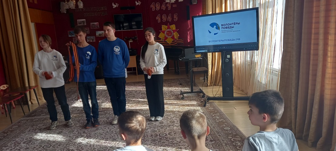 Еще одним событием в рамках подготовки к великому празднику стало проведение патриотического урока «Георгиевская ленточка» и акции «Письмо Победы». Волонтёры Победы побывали в гостях у Центра и рассказали девчонкам и мальчишкам про историю возникновения, значение Георгиевской ленты, про правила ее ношения. Так же они помогли подросткам написать письма благодарности ветеранам Великой Отечественной Войны и письма с теплыми словами поддержки войнам СВО.