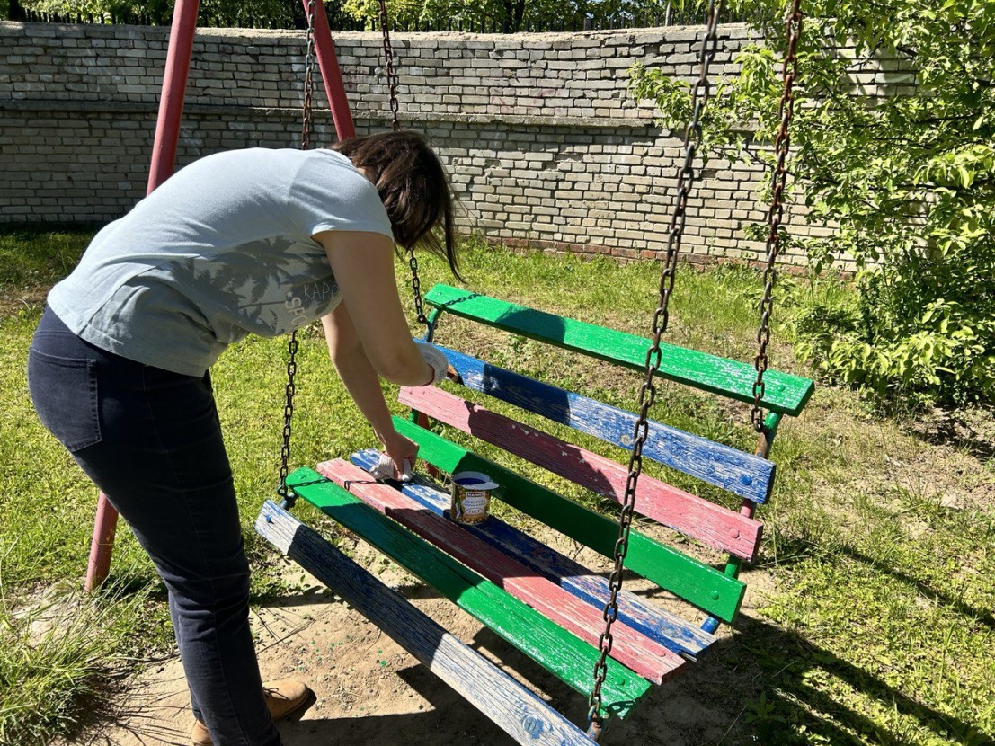 В преддверии начала лета сотрудники центра «Милосердие» провели субботник по покраске ограждений и малых архитектурных форм.