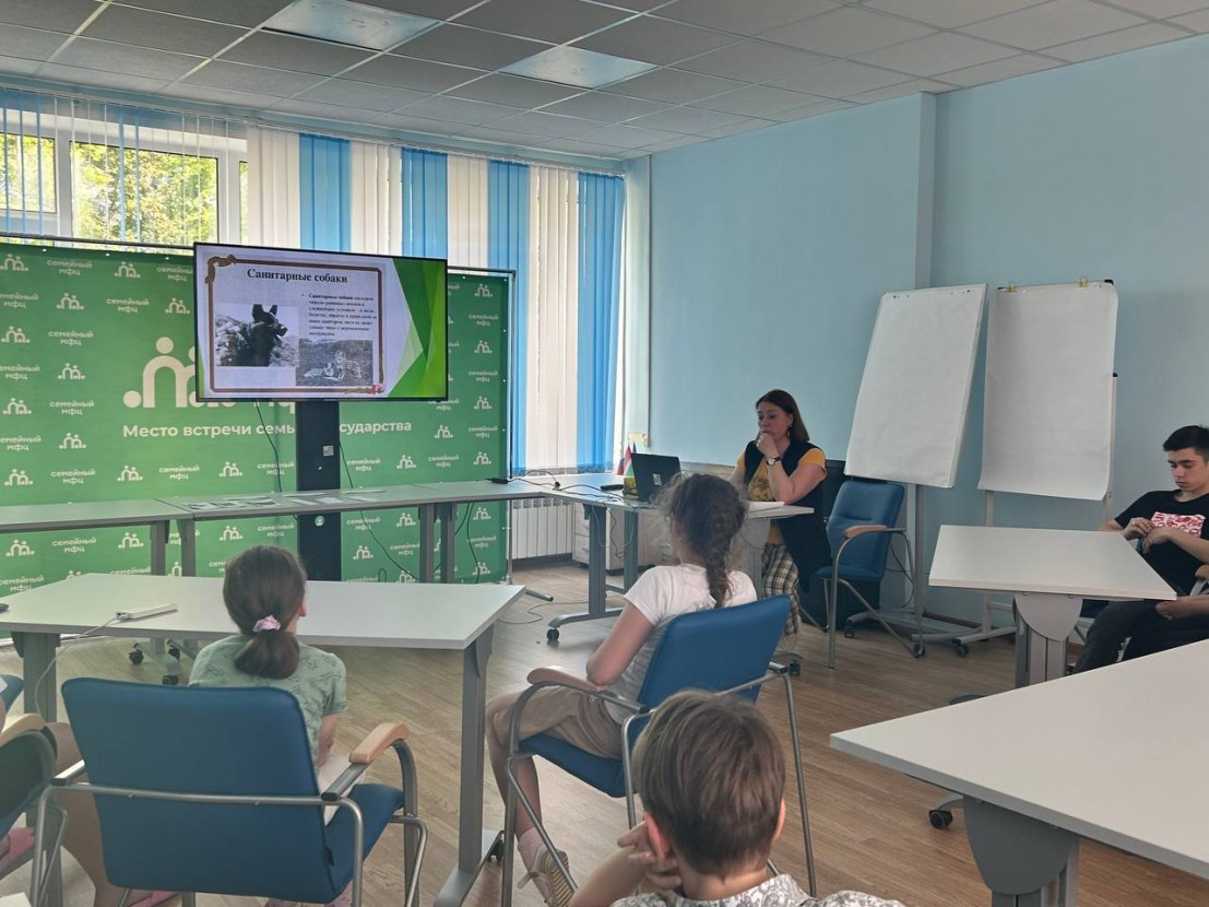В центре «Милосердие» прошло открытое занятие на тему: «Собаки на фронтах Великой Отечественной войны» с воспитанниками 9 и 8 группы центра.