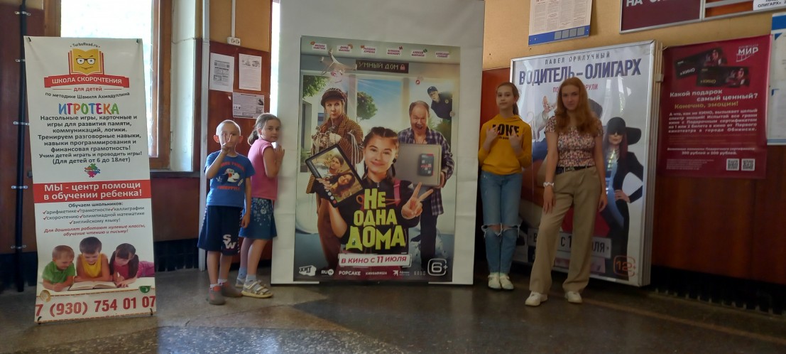 23 июля воспитанники центра «Милосердие» посетили кинотеатр «Мир». Ребята посмотрели семейную комедию «Не одна дома», после просмотра фильма дети побывали в городской детской библиотеке № 6, где поучаствовали в развлекательной интерактивной программе «Игры нашего двора».