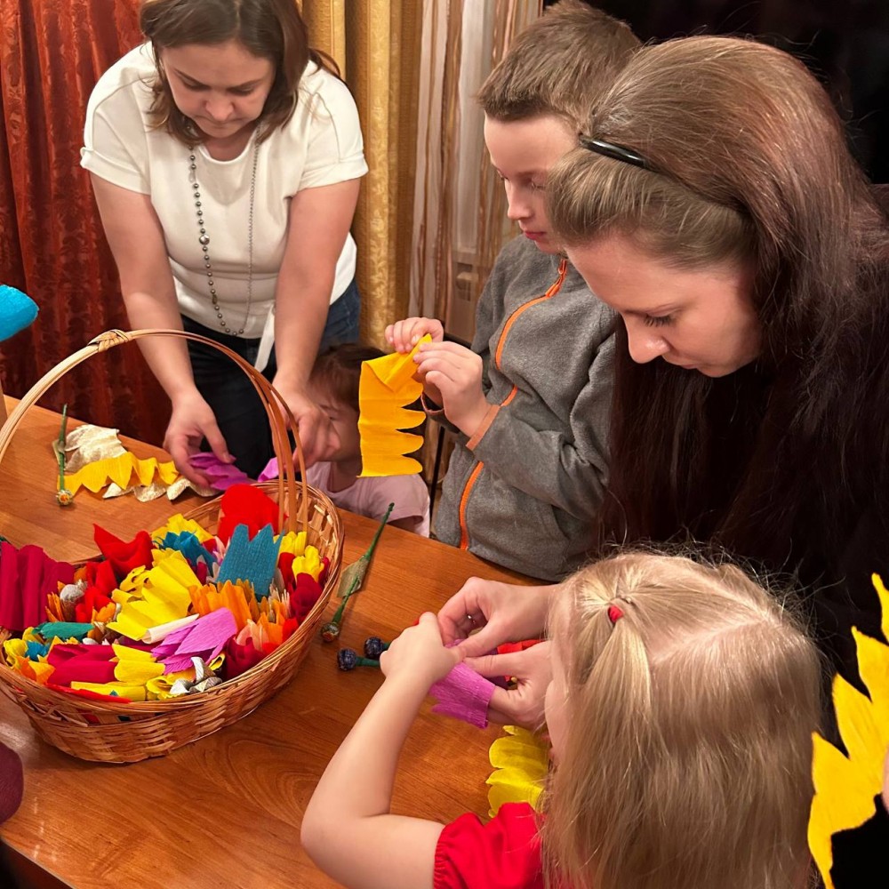 После тренинга родители вместе с детьми поучаствовали в мастер-классах по изготовлению букетов и рисованию в технике Эбру.