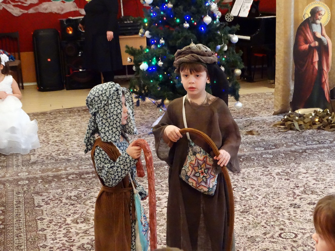Уже по доброй традиции и по благословению иерея Евгения Кандыбина ребята со своими наставниками разыграли перед воспитанниками центра Вертепное действо.