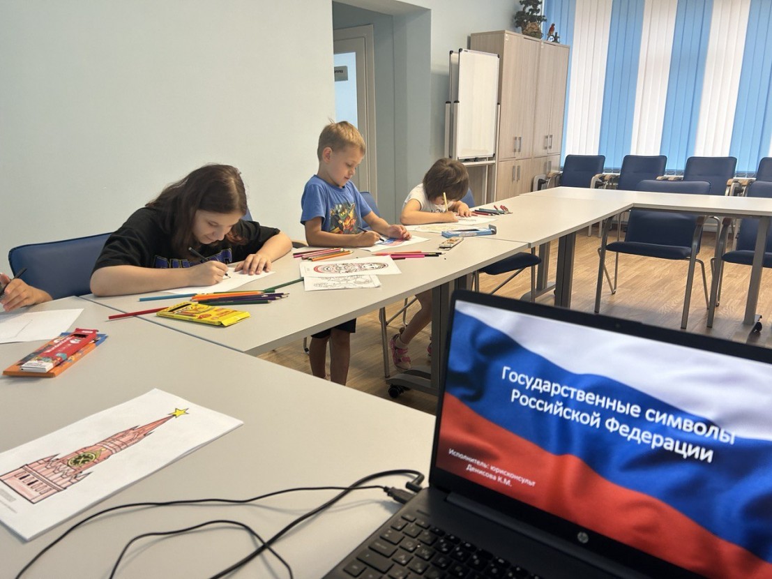 В завершение ребята нарисовали государственные символы России. Рисунки получились яркими и оригинальными. Ребята проявили фантазию и творческий подход, изображая флаг и герб России. Некоторые рисунки были дополнены надписями, выражающими любовь к Родине и уважение к ее символам.