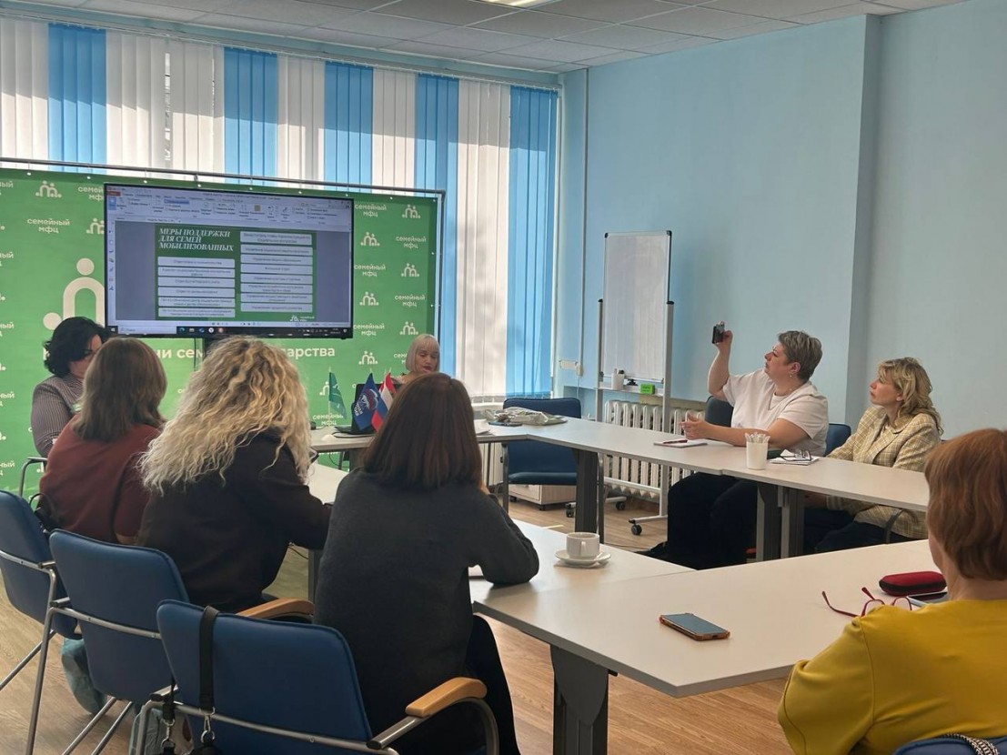 В ходе визита участники изучили нормативно-правовую базу, регулирующую деятельность Семейных многофункциональных центров (СМФЦ), а также узнали о всесторонней поддержке, оказываемой семьям с детьми в Калужской области посредством различных социальных сервисов, предоставляемых центрами.