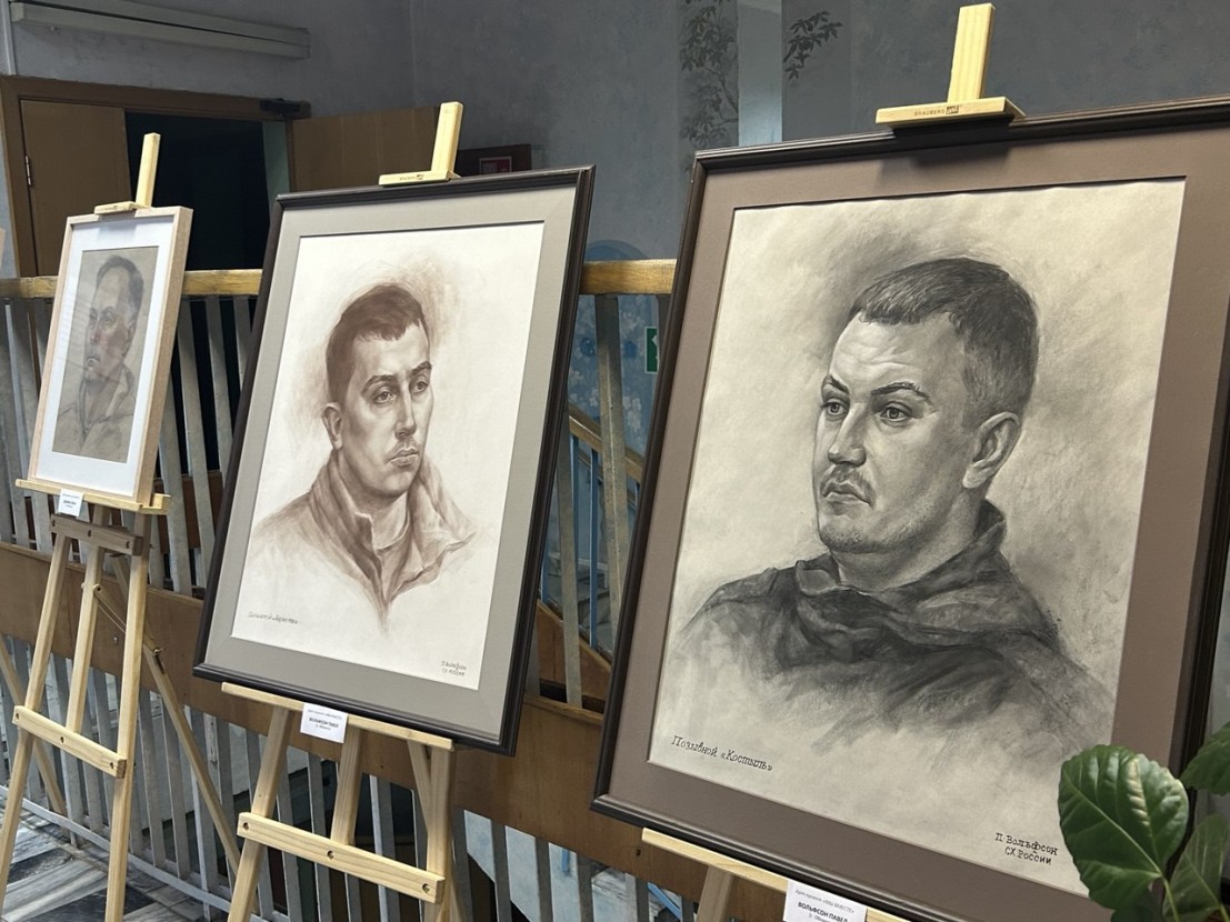 Перед началом мероприятия патриотический проект «Мы вместе!», реализуемый художниками города и музеем истории города Обнинска подготовил выставку портретов бойцов СВО.
