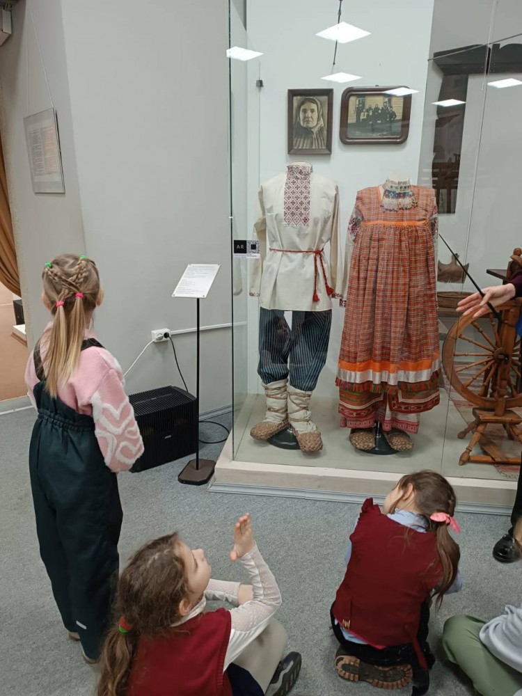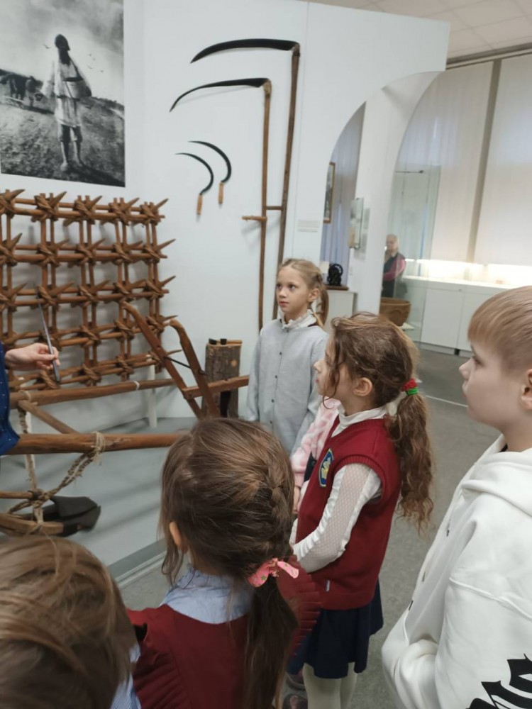 Ребята с большим интересом рассматривали предметы старины, представленные в экспозиции. Экскурсовод подробно рассказывала о каждом экспонате, демонстрируя, как именно им пользовались в крестьянской избе, как заготавливали продукты на зиму, как ткали полотно и пекли хлеб.
