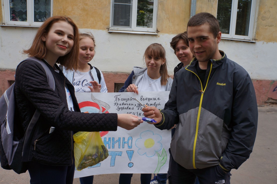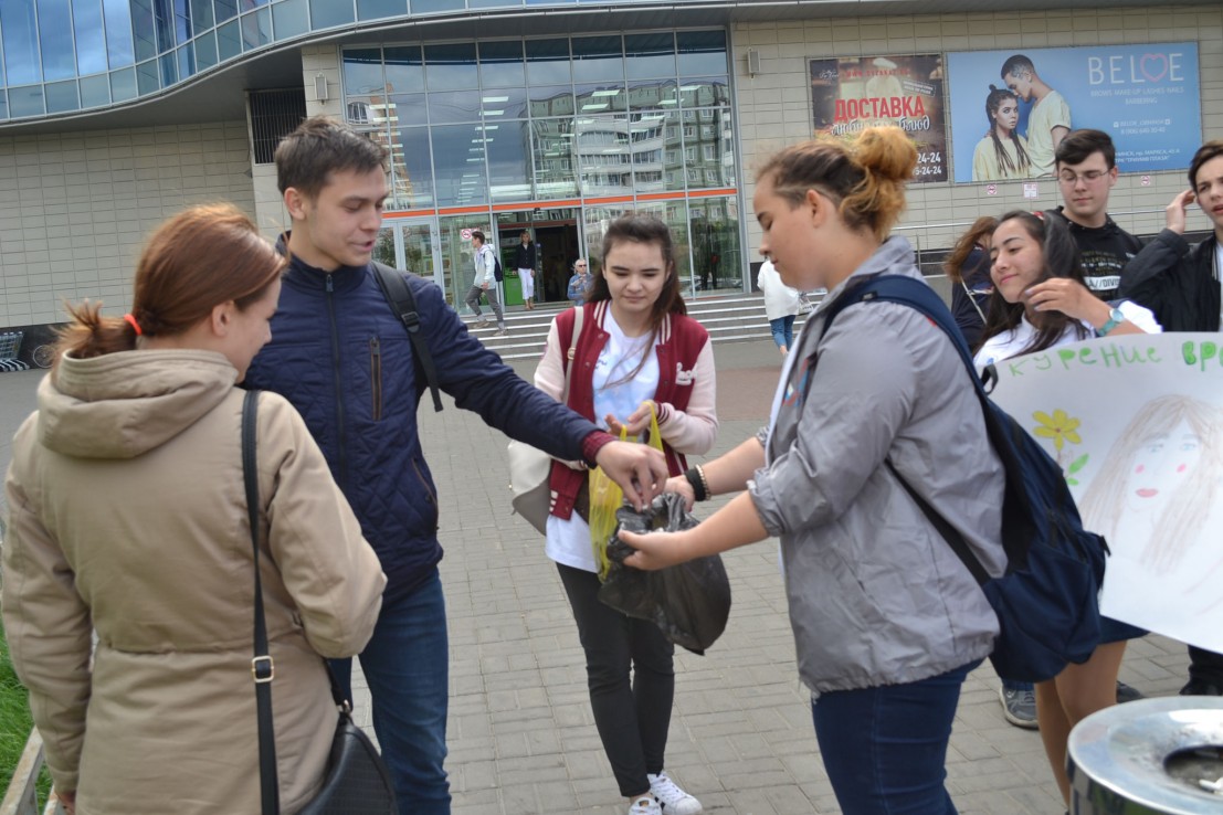 31 мая сотрудники Центра «Милосердие» совместно с волонтерами Обнинской городской организации «Российский Союз Молодежи» и волонтерами из молодежного политического движения «Молодая гвардия» провели городскую акцию «Меняем сигарету на конфету».