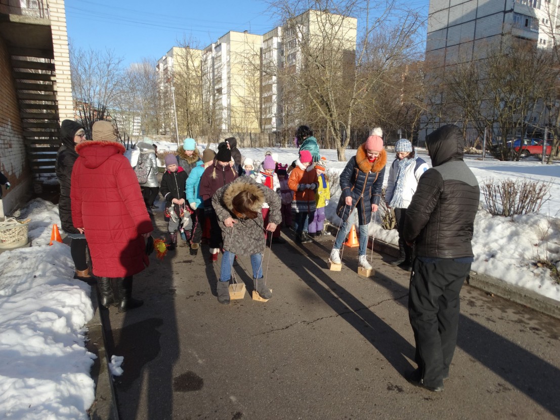 После представления дети и взрослые поделились на команды и отправились проходить испытания по станциям. На станции «Богатырской» девчонки и мальчишки показывали свою ловкость и удальство, участвуя в конкурсе снегоступов, в эстафете блиноносов. На станциях «Загадкино» дети соревновались в смекалке, отгадывали загадки. На станции «Снежной» ребята рисовала красками яркие узоры, разукрашивая снег во все цвета радуг. На станции «Игровая» все с большим удовольствием играли в различные народные и современные игры. Большой интерес у гостей праздника вызывало соревнование перетягивание каната и хороводы–ручейки вокруг Красавицы Масленицы. Все веселились от души, провожая Зимушку!