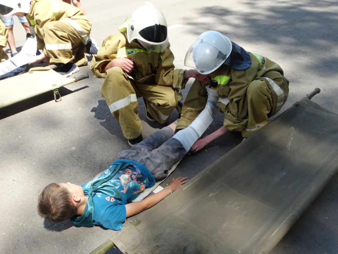 Следующим испытанием для команд стала станция «Переноска пострадавшего» под руководством сотрудников МЧС России по Калужской области. Участникам команды предстояло одеться в боевое снаряжение, добежать с носилками до пострадавшего, наложить повязку на ногу, уложить пострадавшего на носилки и вместе с ним финишировать.