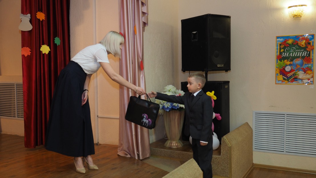 С приветственным словом к гостям праздника обратились начальник управления социальной защиты населения Администрации города Обнинска Жарский Владимир Алексеевич и директор ГБУ КО ОЦСПСД «Милосердие» Халютина Ирина Владимировна. После чего первоклассникам были вручены папки со школьным набором канцелярских товаров.