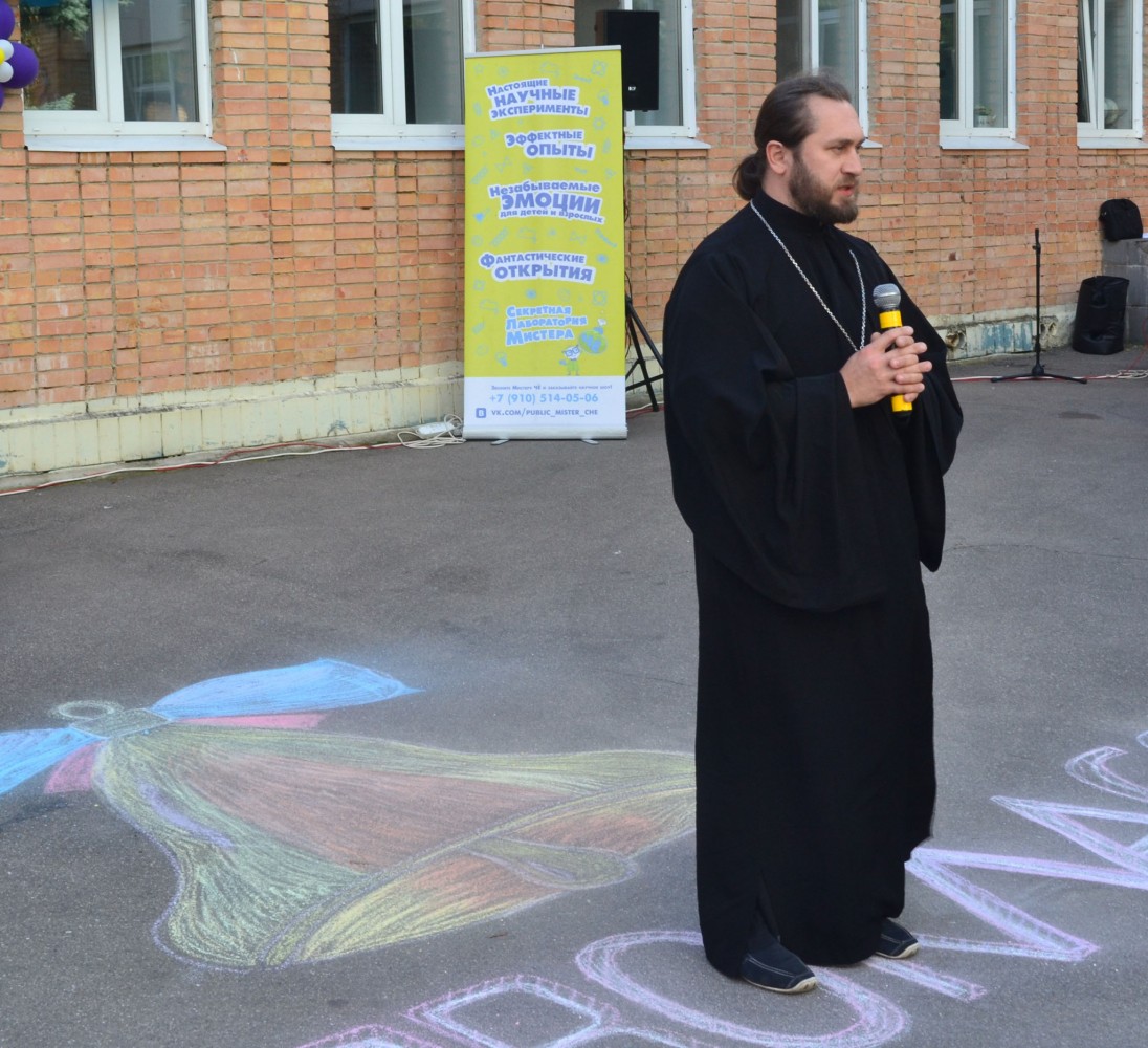 На празднике присутствовали почетные гости. Поздравить будущих первоклассников и помолиться об успешном начале учебного года пришел иерей духовно-просветительского центре «Вера, Надежда, Любовь» Евгений Кандыбин.