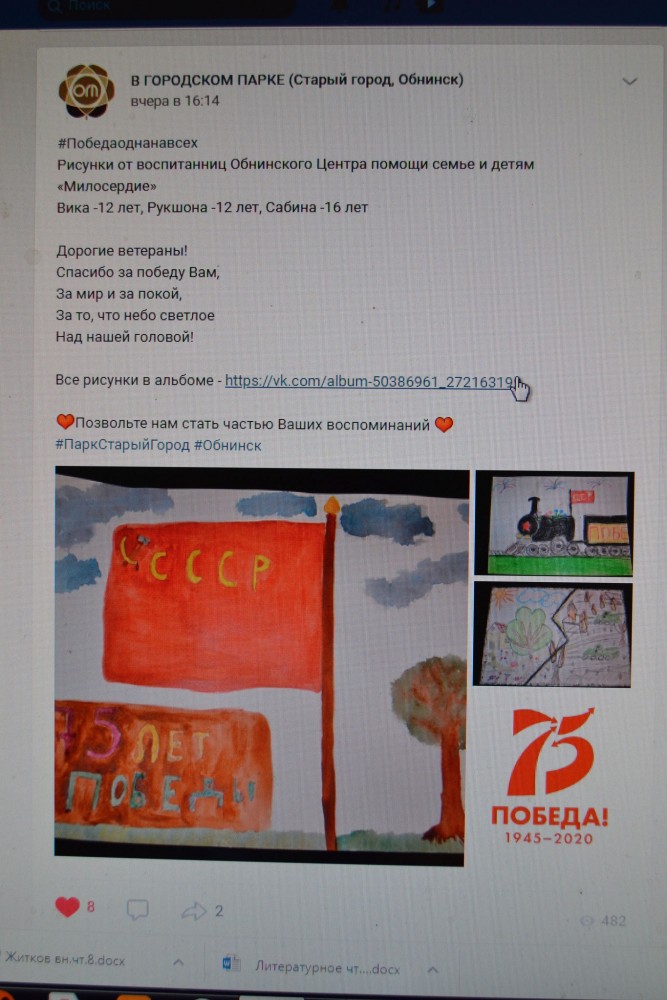 2020 год в нашей стране объявлен годом «Памяти и Славы», в честь юбилея Победы в Великой Отечественной Войне. В преддверии 75-летия Победы в самой жестокой войне двадцатого века для воспитанников Центра «Милосердие» проходили мероприятия, посвященные этому празднику, направленные на патриотическое воспитание подрастающего поколения.