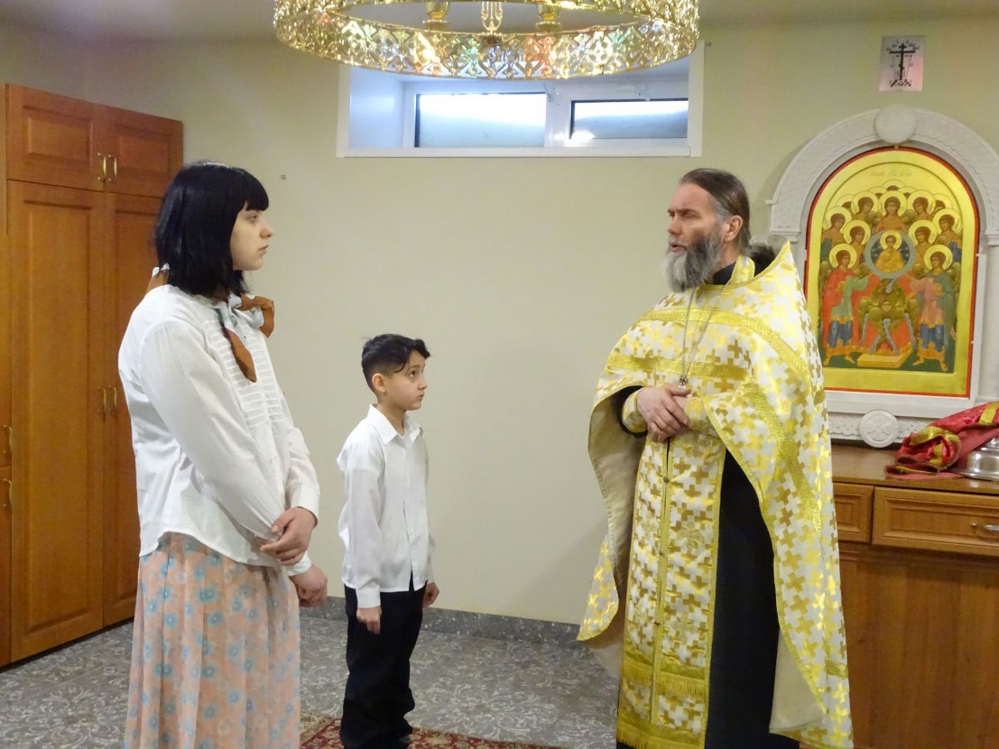 Окормляет центр «Милосердие» иерей Евгений Кандыбин, проводит еженедельные молебны, содействует проведению творческих акций ко Дню семьи, в неформальной обстановке за чаепитием беседует с детьми о самом главном: о жизни, о вере, о насущных проблемах, благодаря чему становится все больше желающих стать членами Церкви. В ясное снежное утро 13 февраля 2021 года в храме Веры, Надежды, Любови и матери их Софии произошло радостное событие. Настоятель Храма протоиерей Сергий Вишняков совершил Таинство крещения над воспитанниками центра социальной помощи семье и детям «Милосердие». По окончании таинства он поздравил детей, пожелал им духовного возрастания и вручил в подарок иконы, молитвослов и Евангелие. Юные христиане и другие воспитанники центра тянутся и открыто откликаются на все мероприятия, которые предлагают им духовные наставники из ДПЦ «Вера, Надежда, Любовь».