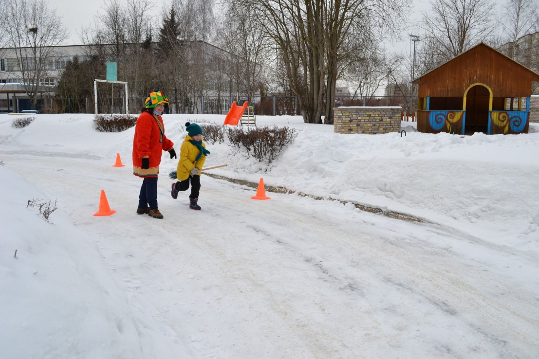 После представления дети и взрослые поделились на команды и отправились проходить испытания по станциям. На станции «Богатырской» девчонки и мальчишки показывали свою ловкость и удальство, участвуя в «Боях подушками». забивали на скорость гвозди в деревянные пеньки, катались на санках. Нам станциях «Загадкино» дети соревновались в смекалке, отгадывали загадки. На станции «Снежной» ребята рисовала красками яркие узоры, разукрашивая снег во все цвета радуг. На станции «Ловкость рук» гости демонстрировали ловкость и смекалку , балансируя деревянными шариками. На станции «Игровая» все с большим удовольствием играли в различные народные и современные игры. Большой интерес у гостей праздника вызывало соревнование перетягивание каната. Все веселились от души, провожая Зимушку!