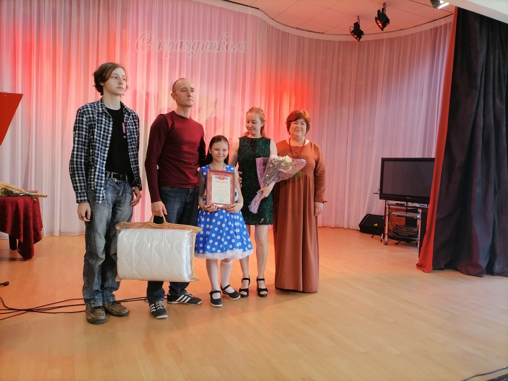 Победителей и участников фестиваля поздравили, заместитель главы Администрации города по социальным вопросам – Попова Татьяна Сергеевна и начальник социальной защиты населения Администрации города - Жарский Владимир Алексеевич. Победителями конкура стали: семья Зубаревых Лидии Федоровны и Владислава Афанасьевича – в номинации «Золотая семья», семья Пономаревых Татьяны Анатольевны и Алексея Петровича – в номинации «Большая дружная семья», семья Ростокиных Светланы Валентиновны и Владимира Ивановича – в номинации «Теплый дом», семья Опаницыной Елены Васильевны- в номинации «Самая читающая семья», семья Войтовых Инны Николаевны и Александра Александровича – в номинации «Спорт - залог здоровья», семья Мартыновых Марины Анатольевны и Игоря Александровича - в номинации «Мир семейных увлечений». Семьи были награждены дипломами победителей, цветами и памятными подарками.