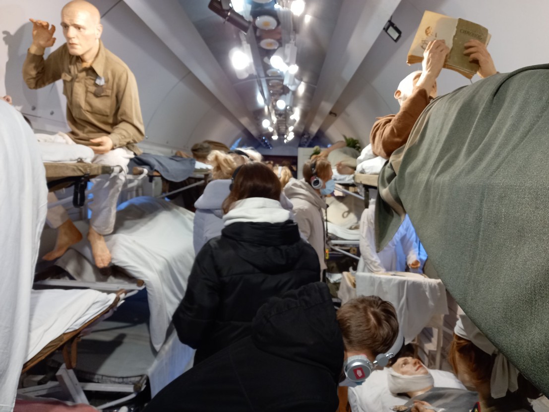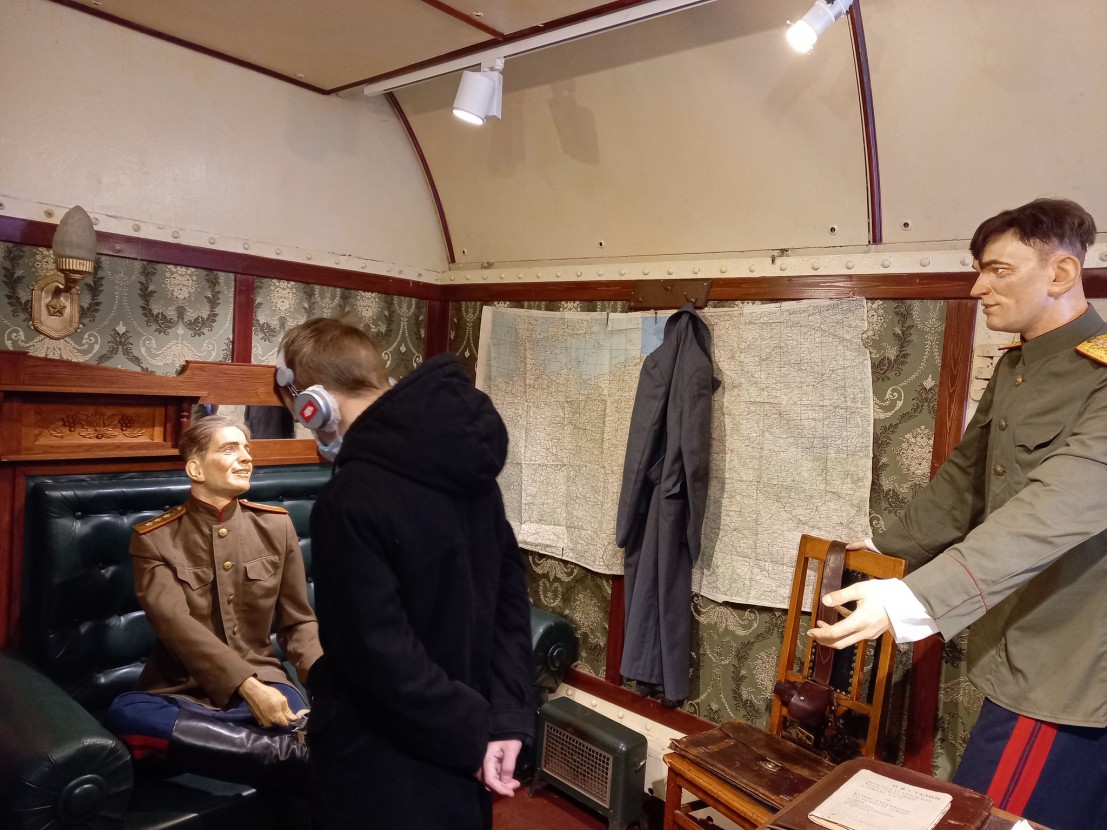 Уникальный состав представляет собой современный музей на колесах с иммерсивной инсталляцией, которая размещена в вагонах поезда. Попадая внутрь, юные посетители перемещаются в тяжелые времена для нашей страны, когда каждый житель мечтал о мирном небе и спокойной жизни. Музей Поезд Победы состоит из семи вагонов с разными инсталляциями и сюжетами. К примеру, на экскурсии ребята попали в товарный вагон, который использовался немцами для перевозки пленных солдат. В санитарном вагоне изображается операция, которую военные врачи делают на ходу поезда.