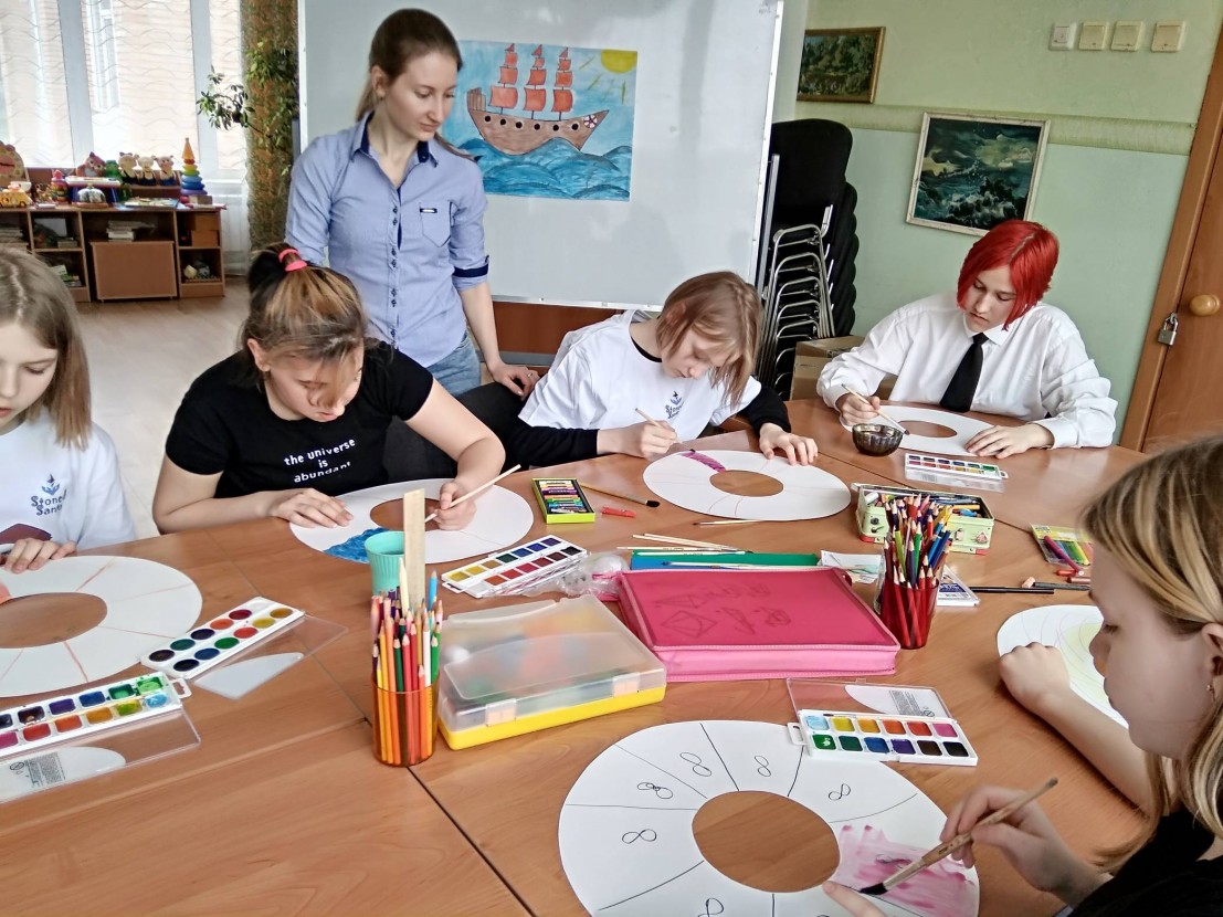 Подростки справились с заданиями через арт-терапию. Для спасения, каждый участник создал себе свой личный спасательный круг. Дети обсудили варианты самопомощи в трудных ситуациях и познакомились со службой «Детский телефон доверия».