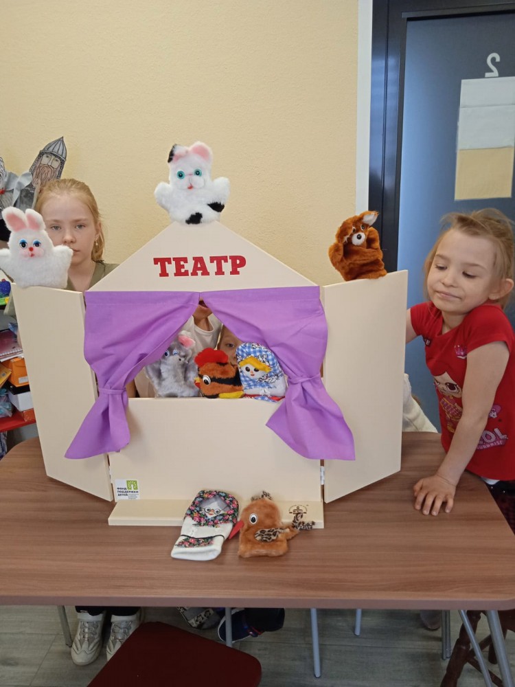 Директор Обнинского Центра помощи семье и детям «Милосердие» Ирина Халютина передала студии подарок - настольный кукольный театр, который дети приняли с большим восторгом.