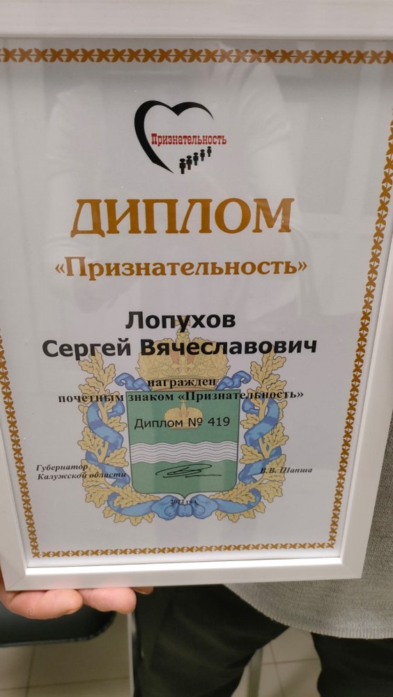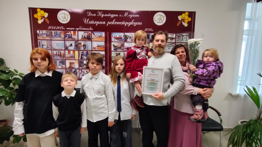 В городе Медыни Калужской области 5 октября прошёл областной Фестиваль «Отец – защитник семьи и Отечества», в рамках фестиваля почетным знаком «Признательность» Калужской области, награжден отец 8 детей, знаменитый скульптор, член Союза художников России - Сергей Вячеславович Лопухов.