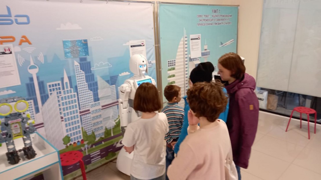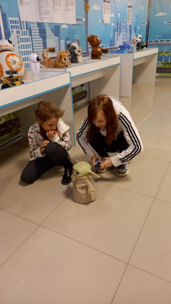 На выставке ребята увидели 50 управляемых роботов из разных стран мира,посмотрели танец молний Катушки Теслы. Робот Деревяка поиграл с ними в викторины.Особый интерес у детей вызвали очки виртуальной реальности,с помощью которых они могли погружаться в морские пучины или летать высоко в небе,а так же VR-игры .Еще ребята смогли немного окунуться в прошлое и попробовать поиграть в видео игры на приставке. Были игры и фотографии с настоящим роботом Бамблби!Ребятам очень понравилось на выставке,которую они надолго запомнят.