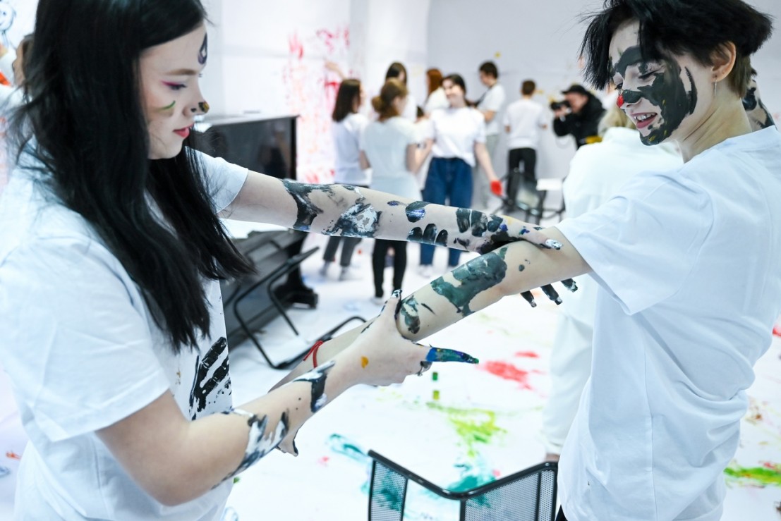 После визуализации подростки рисовали разноцветной гуашью руками, носами, даже пальцами ног, выплескивая свои мечты и переживания в мир, делились через рисунки тем, о чем не всегда могут рассказать. Творили в пространстве, по-новому узнавая себя и создавая свой яркий мир.