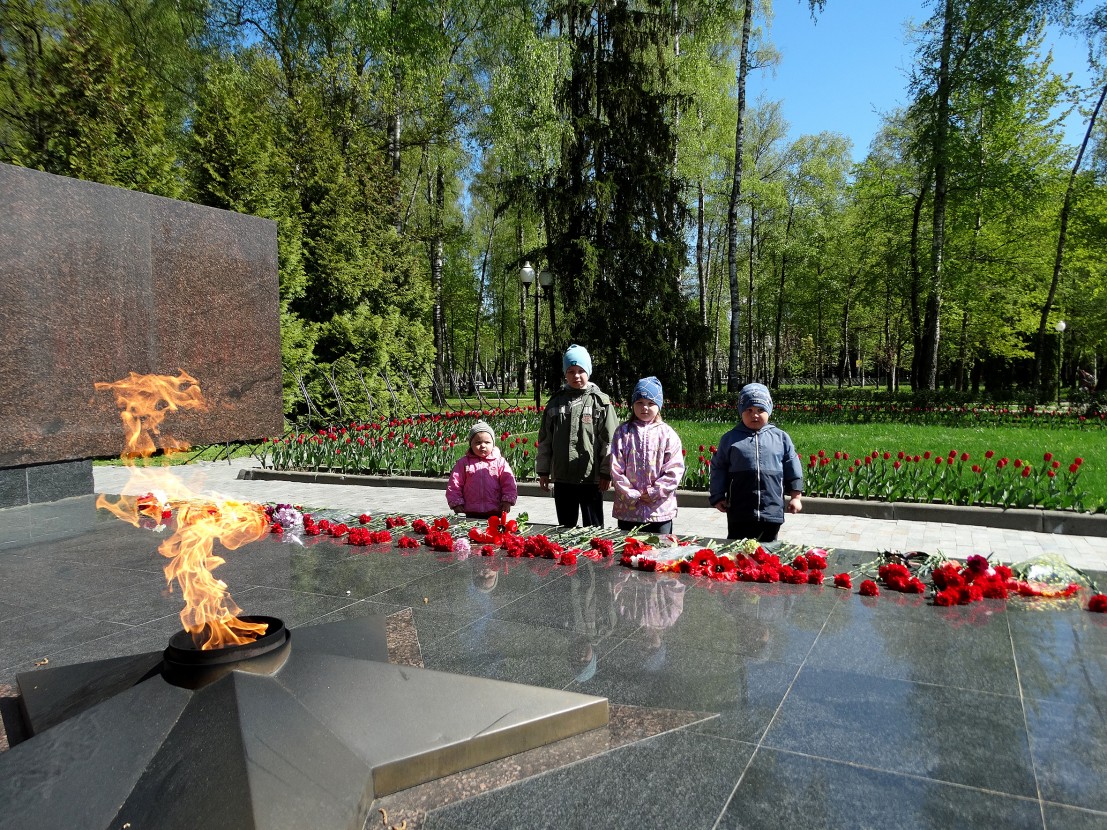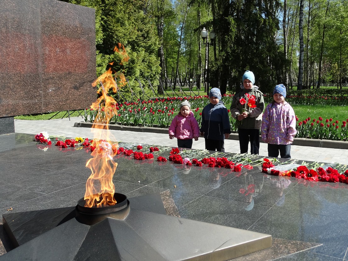 День Победы остаётся самым светлым, самым трогательным, самым душевным, дорогим и любимым народным праздником. Для того, чтобы сохранить память о подвиге советского народа, педагоги младшей группы центра, организовали экскурсию на площадь Победы к Вечному огню. Рассказали детям о значении этого праздника. Дети прочитали стихи о войне, о Победе. Почтили память погибших минутой молчания, возложили цветы и поклонились. После экскурсии в сердцах ребят остались самые тёплые и добрые воспоминания о защитниках нашей Родины. " Никто не забыт, ничто не забыто!".