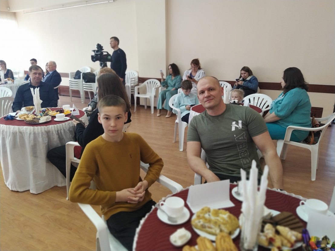 На протяжении всего мероприятия атмосфера была доброжелательной и по-домашнему уютной. Для семей было организовано чаепитие и праздничный концерт солистов Городского Дворца Культуры.