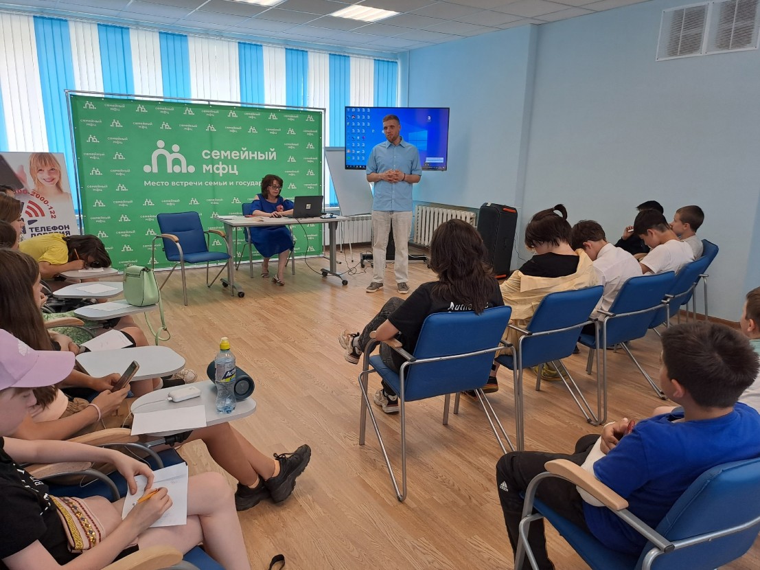 В программе мероприятий было посещение Центра социальной помощи семье и детям «Милосердие». Психолог Центра провела интересное, социально-значимое мероприятие по Детскому телефону доверию. Ребятам была предоставлена информация об истории создания телефона доверия в мире и в нашей стране, по каким вопросам можно обращаться в эту службу.