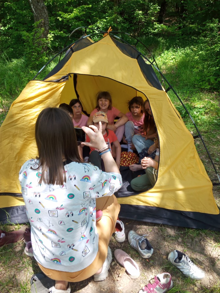 В этот раз у наших ребят был туристический однодневный поход без ночевки, но это не помешало разбить палаточный лагерь и насладиться пением у костра.