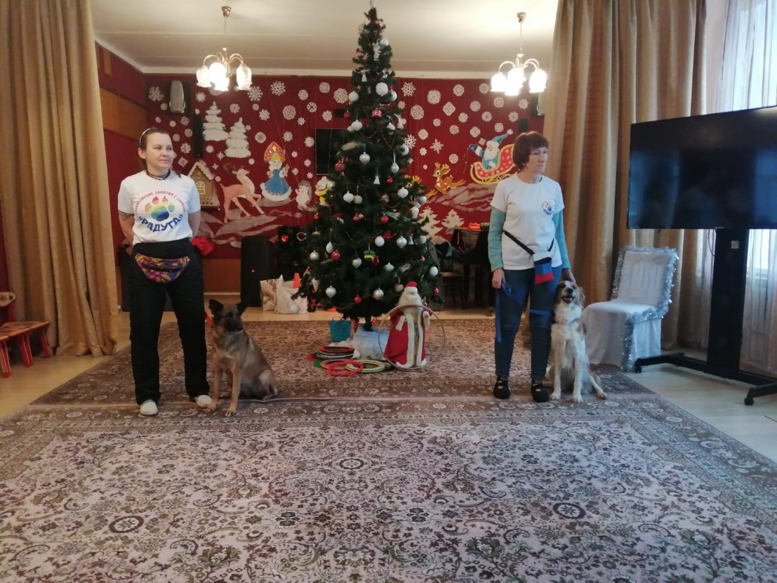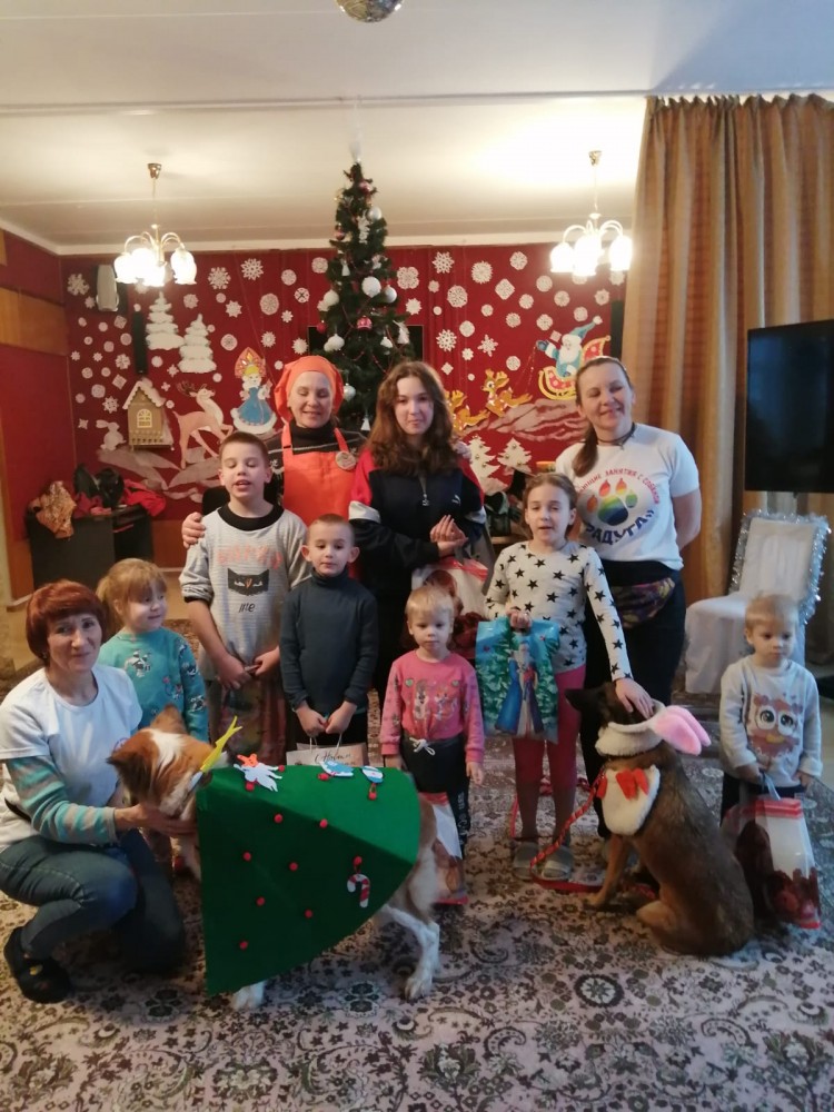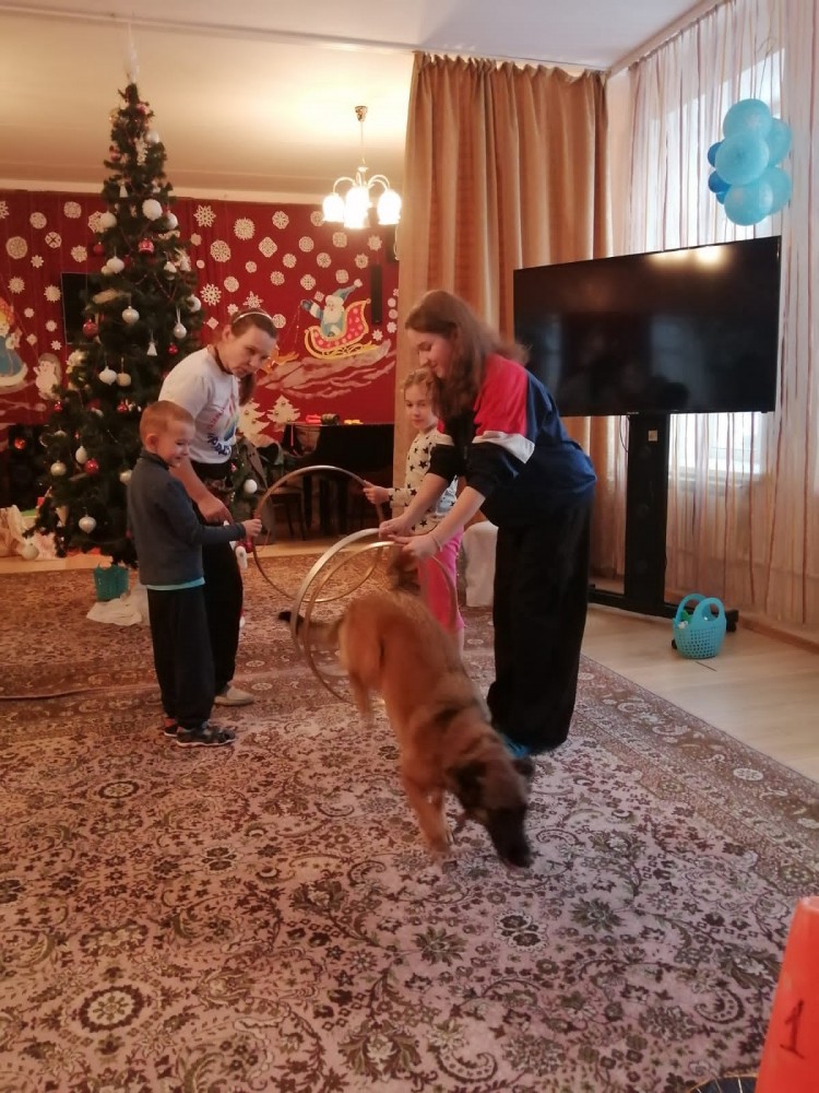 Была еще одна удивительная встреча ребят с дрессированными собаками. Сотрудники группы «Развивающие игры с собакой "Радуга" совместно с волонтерской организацией "Пища жизни Обнинск" пришли порадовать девчонок и мальчишек!