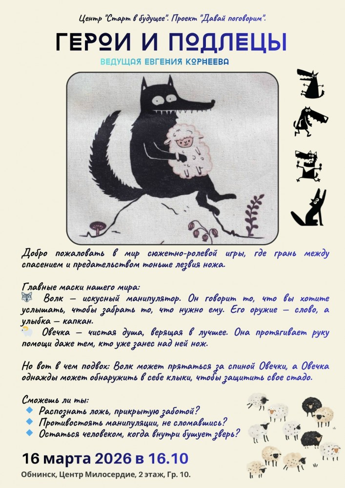 Что будет, если надеть маску хитреца и попытаться обвести вокруг пальца честного героя? А если самому оказаться на месте «овечки» в окружении «волков»? Именно в такие ситуации и погрузила ребят замечательная ведущая Евгения Корнеева.